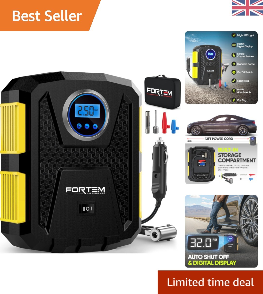 Compact 12V Tyre Inflator with Automatic Shut-Off & LED Light for Emergencies