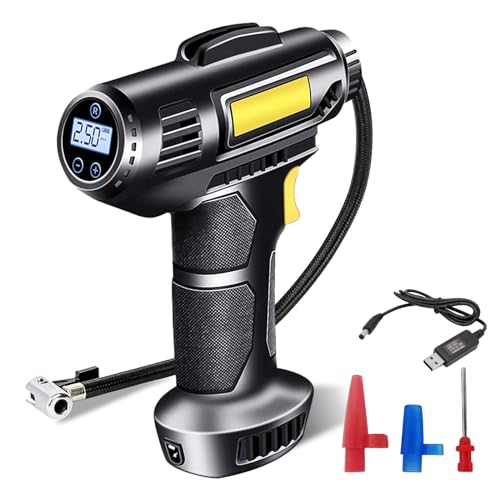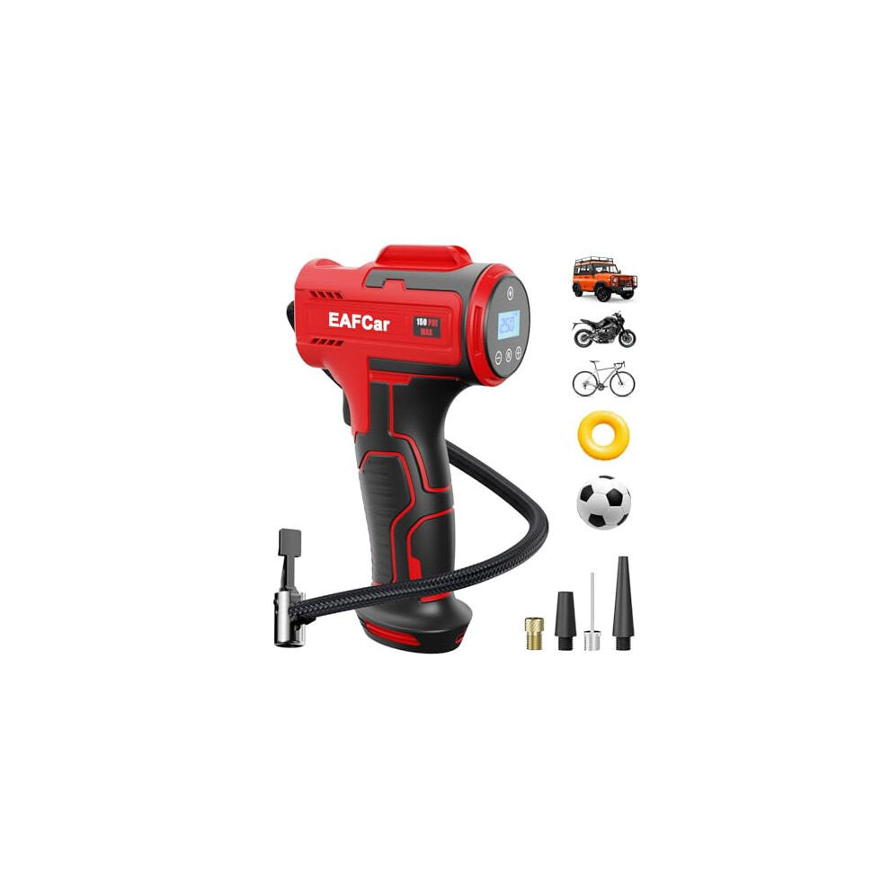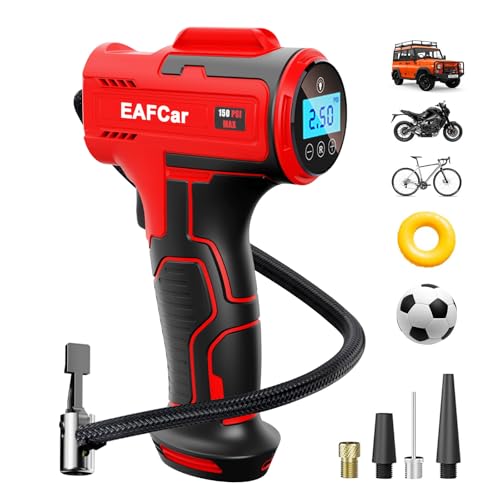 EAFCar Cordless Tyre Inflator Air Compressor,150PSI Electric Digital Display Portable Automatic Tyre Pump with LED Light & 3 Nozzle for Car, Motorcycle, Bike, Ball