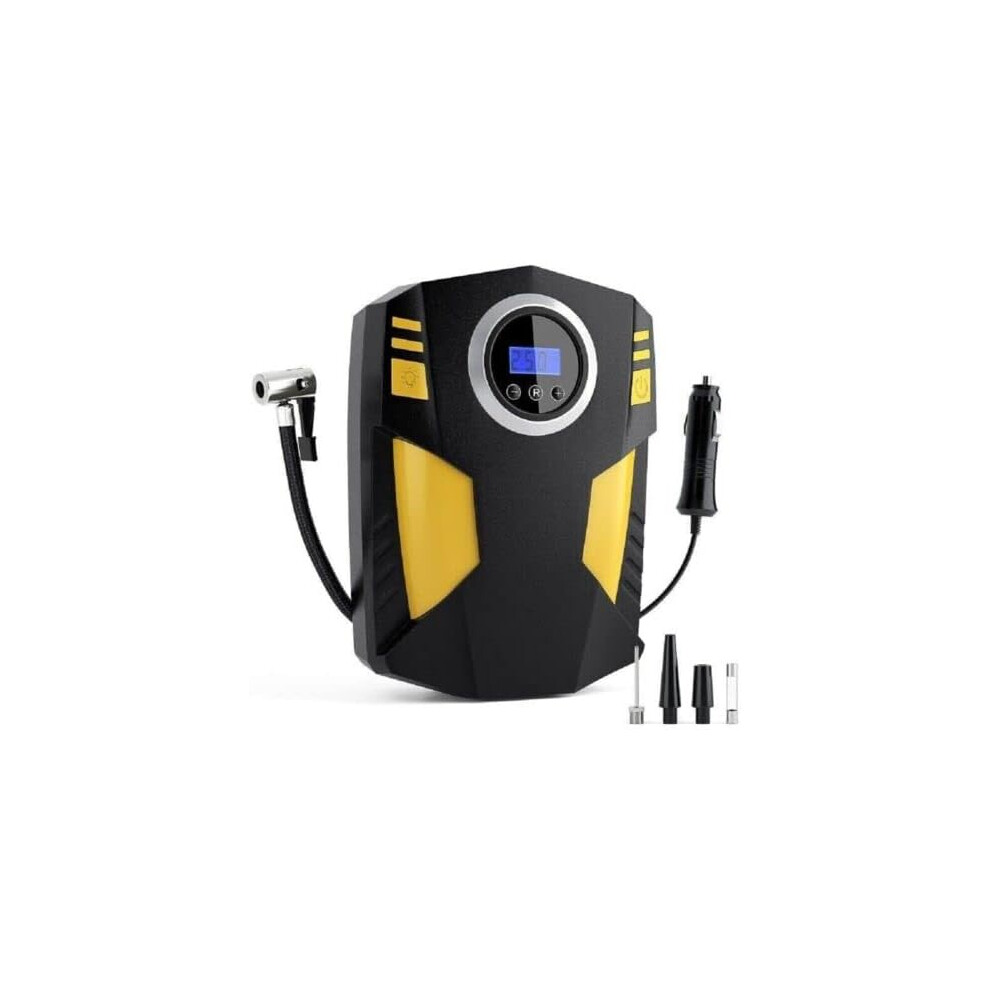 Fayet Digital Car Tyre Inflator Air Tool Portable Air Compressor Car Tyre Pump Automatic 12V Electric Air Pump Tyre Inflation with Tyre Pressure Gauge Valve Adaptors LED Light