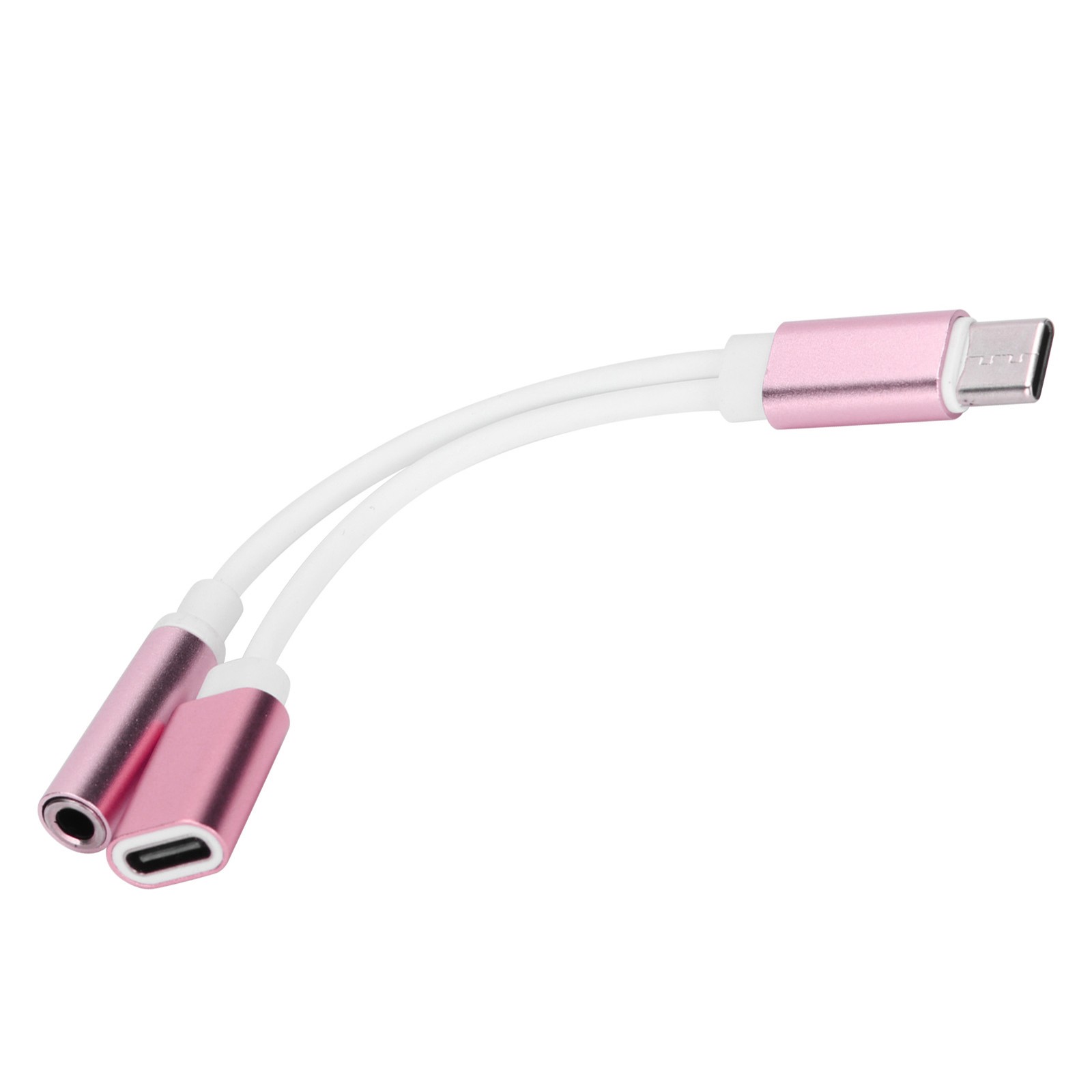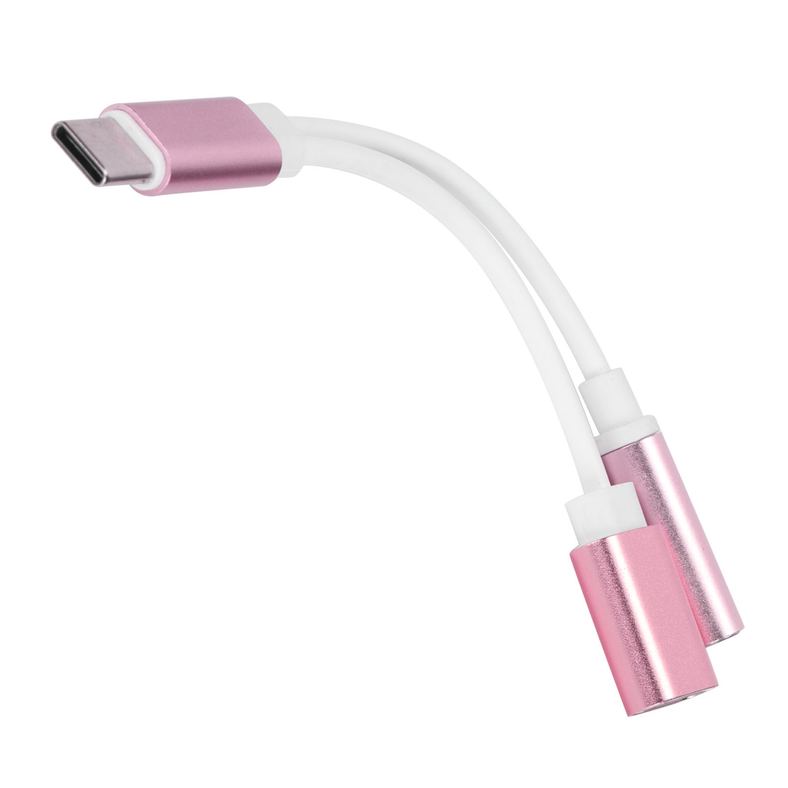 (Pink)2 In1 TypeC To 3.5mm Aux Charging Cable Adapter Headphone Split SG