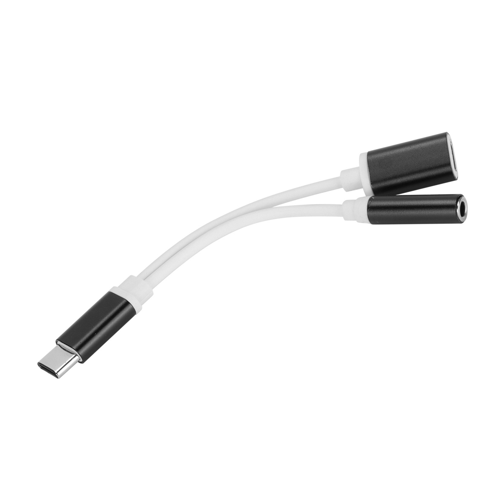 (Black)2 In1 TypeC To 3.5mm Aux Charging Cable Adapter Headphone Spli