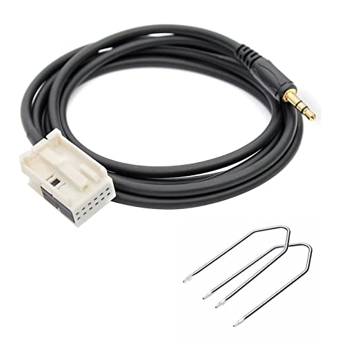Yesmin AUX Cable for Renault Car Audio Parts, 3.5mm Audio Jack MP3 iPod iPhone 1.5m Aux Input Adapter Cable Lead for Renault Clio Megane Laguna Espace Kangoo Scenic with 2 U Style Release Keys