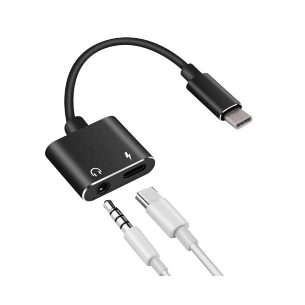 (Standard, 1) 2 In 1 Usb Type C Adapter Charger Audio To 3.5Mm Jack Headphone Aux Converter Black Cables & Adapters