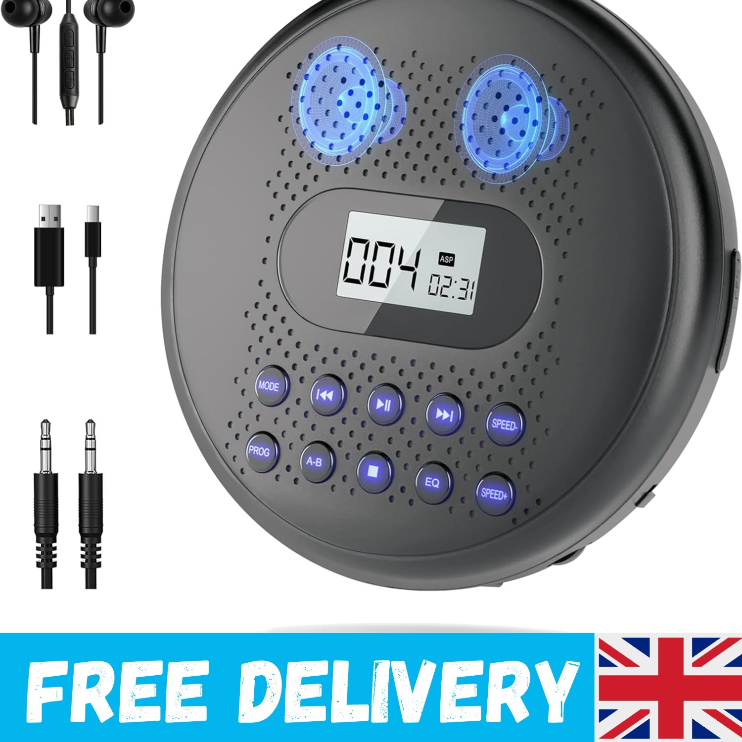 Versatile Portable CD Player with Headphones, AUX Cable, and Anti-Skip Feature