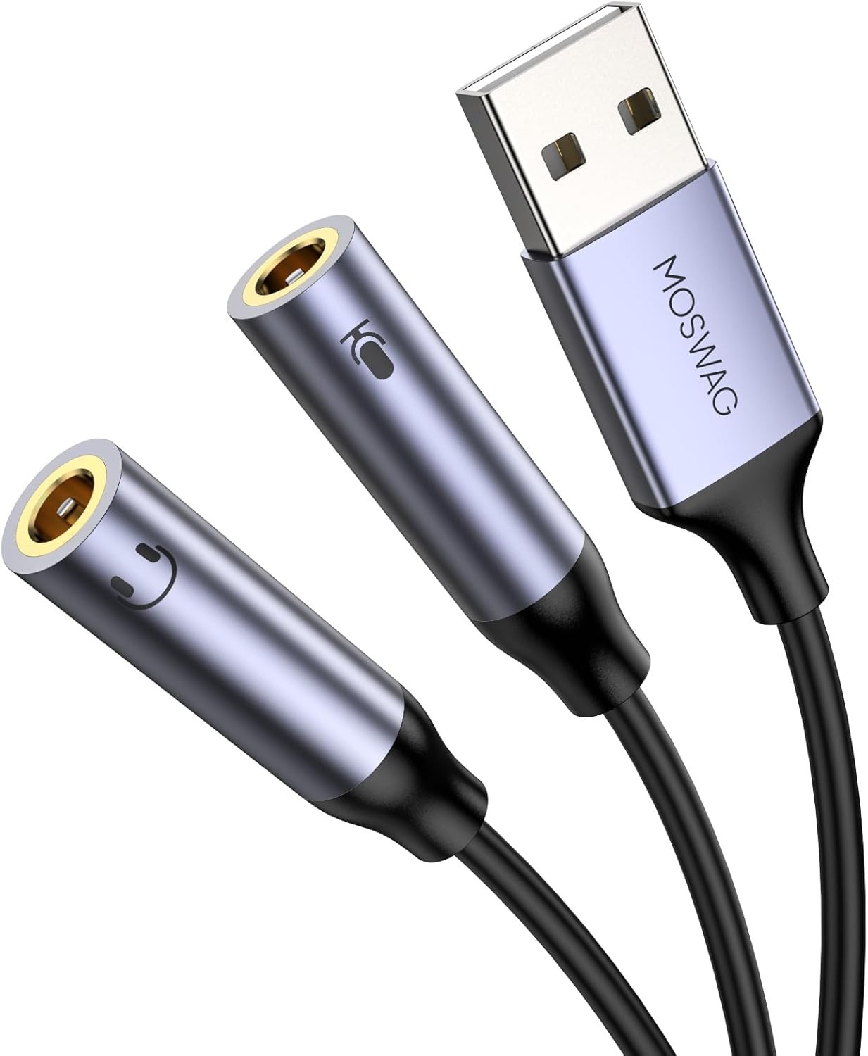 MOSWAG USB Audio Adapter, USB to Dual 3.5mm Aux Mic Splitter Cable Compatible with Windows, Laptops, Desktops Windows, MAC, Linux, PC, PS5, PS4