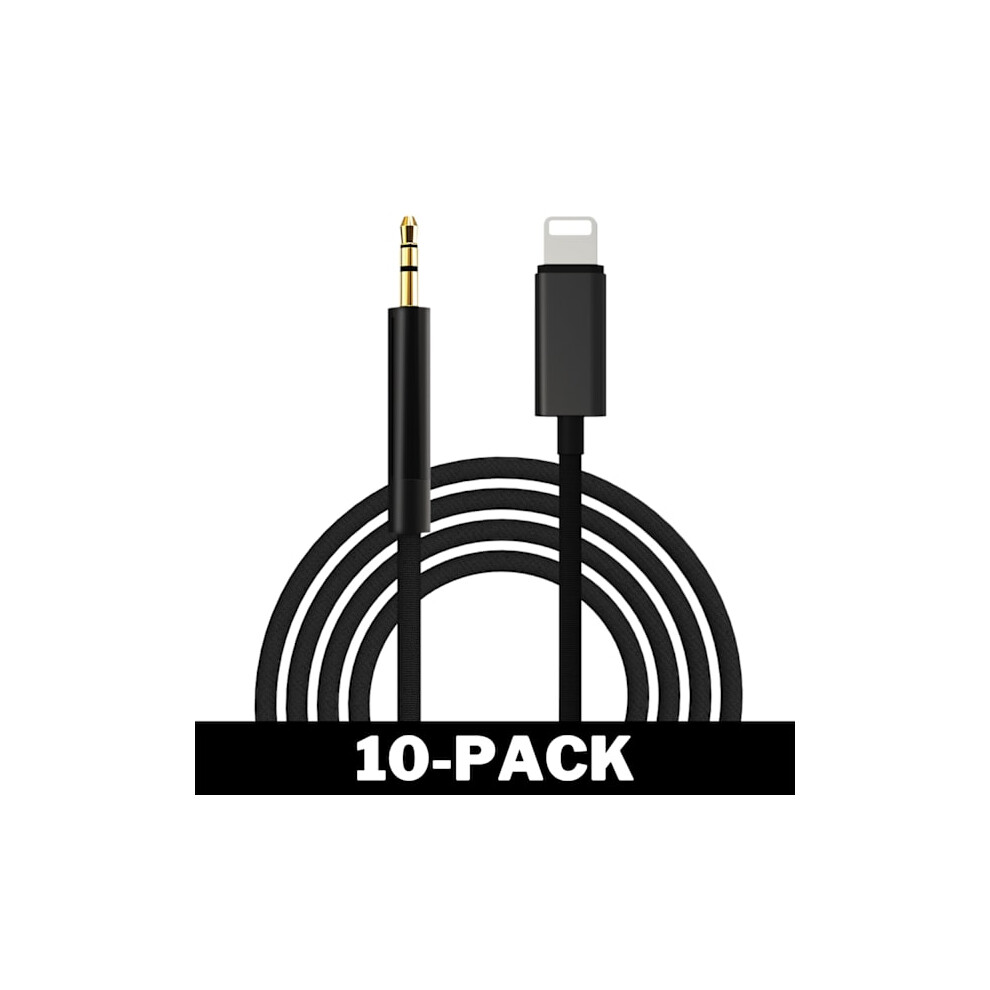 2M Lightning to AUX 3.5mm Cable/Adapter Car Black 10-Pack