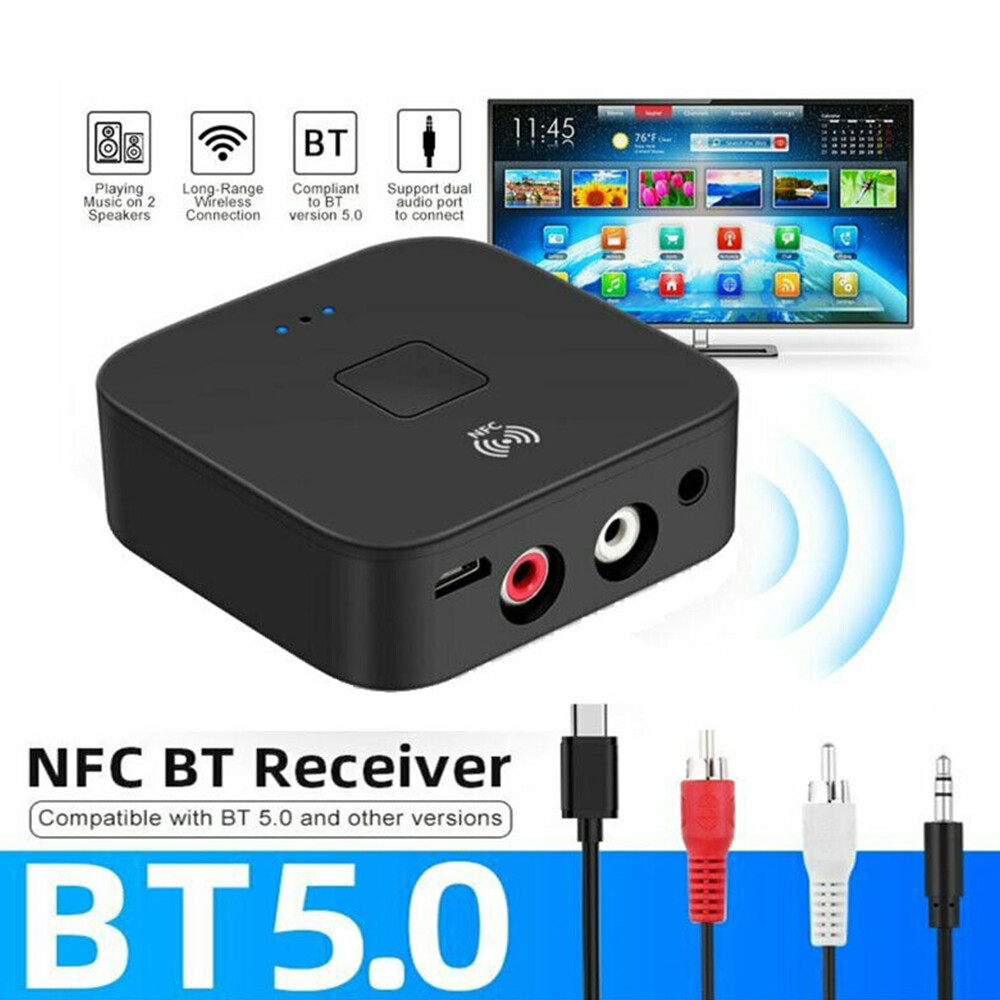 5.0 Receiver Wireless 3.5mm Jack AUX NFC To 2RCA USB Stereo