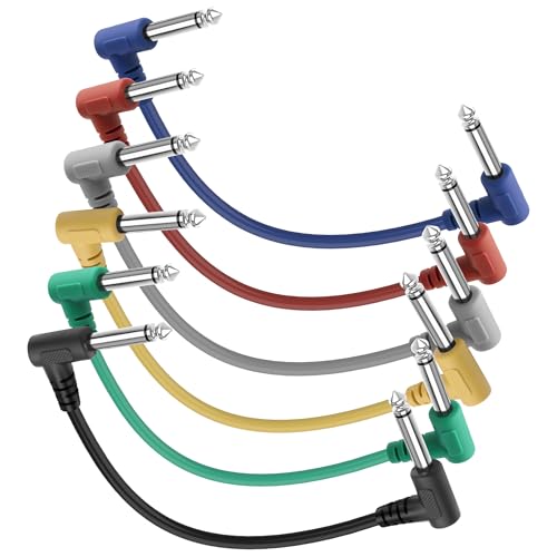 XMSJSIY Guitar Patch Cables Effect Pedal Cord 6.35mm 1/4 inch TS Male to Male Right Angle Plug Auxiliary Cable for Bass Guitar Instrument - 6 Packs - 25CM / 9.84inch