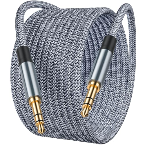 Txtcu 25m 3.5mm Auxiliary Audio Cable, Male to Male, Braided Nylon, Compatible with iPhone, Android, Car Stereos, Home Theater, MP3 Players