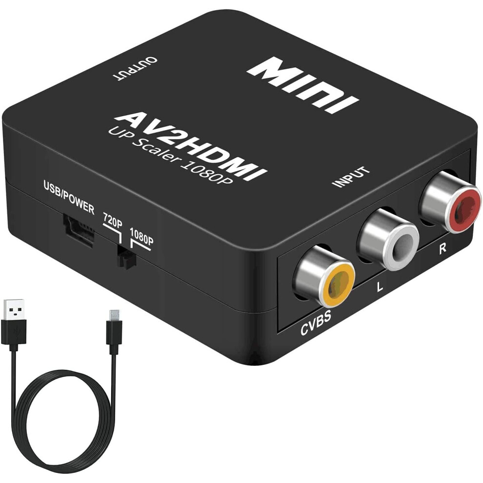 RCA to HDMI, AV to HDMI Converter, 1080P Mini RCA Composite CVBS AV to HDMI Video Audio Converter, with USB Power Cable for PC Laptop Xbox PS4