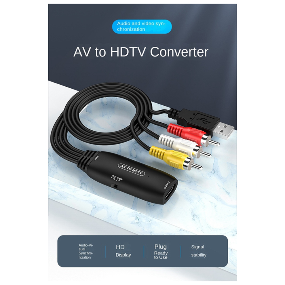 1080P AV to HDTV RCA-Compatible to HDMI-Compatible Composite Adapter Converter with HDMI-Compatible Cable AV Adapter