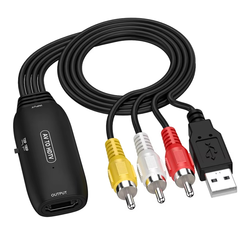 Rca To Hdmi Converter With Hdmi Cable, Av To Hdmi Converter, Rca Input Hdmi Output Video Audio Adapter For Sky/dvd/stb To Hdtvs