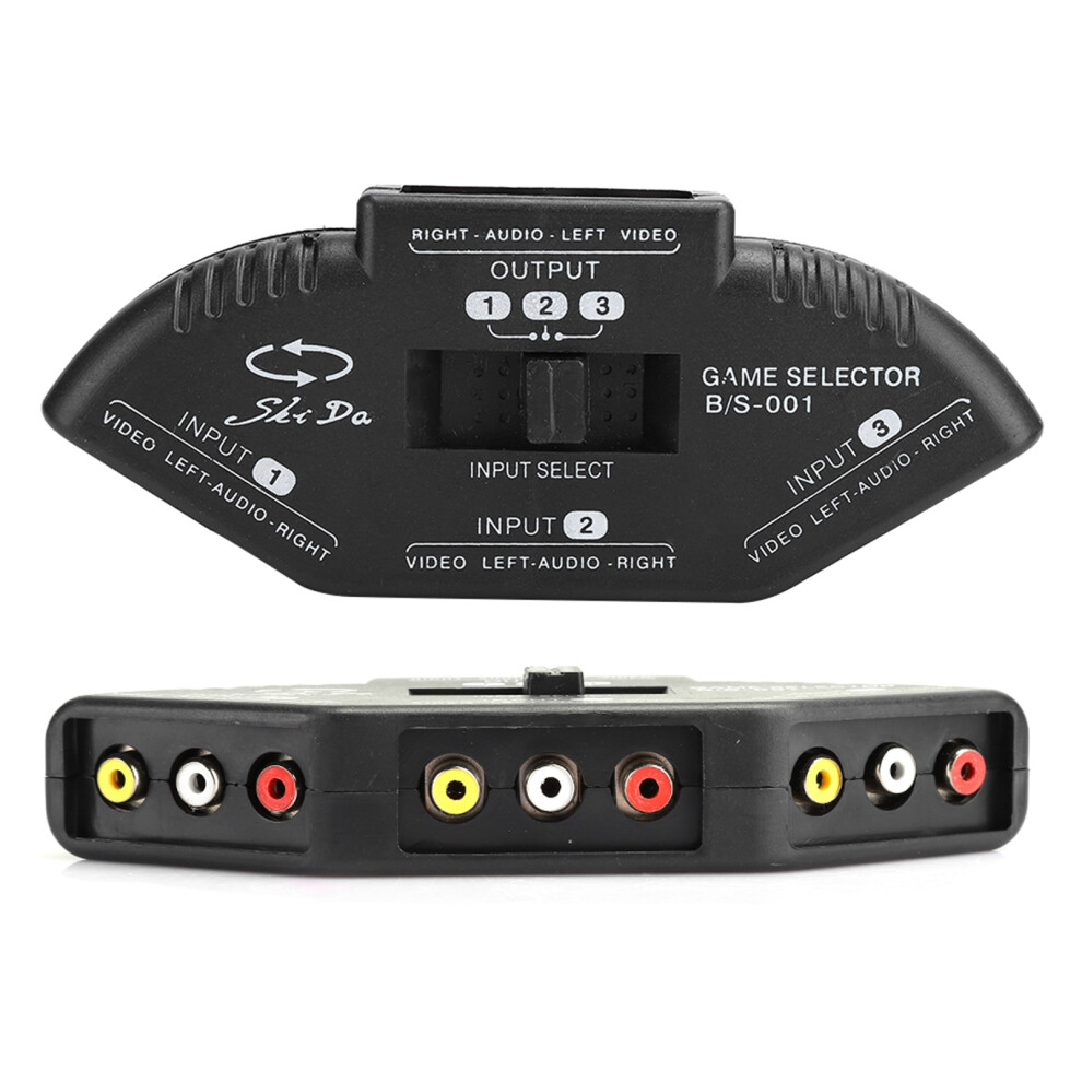 3 In 1 Out Video Splitter Black Selector With AV Cable For New