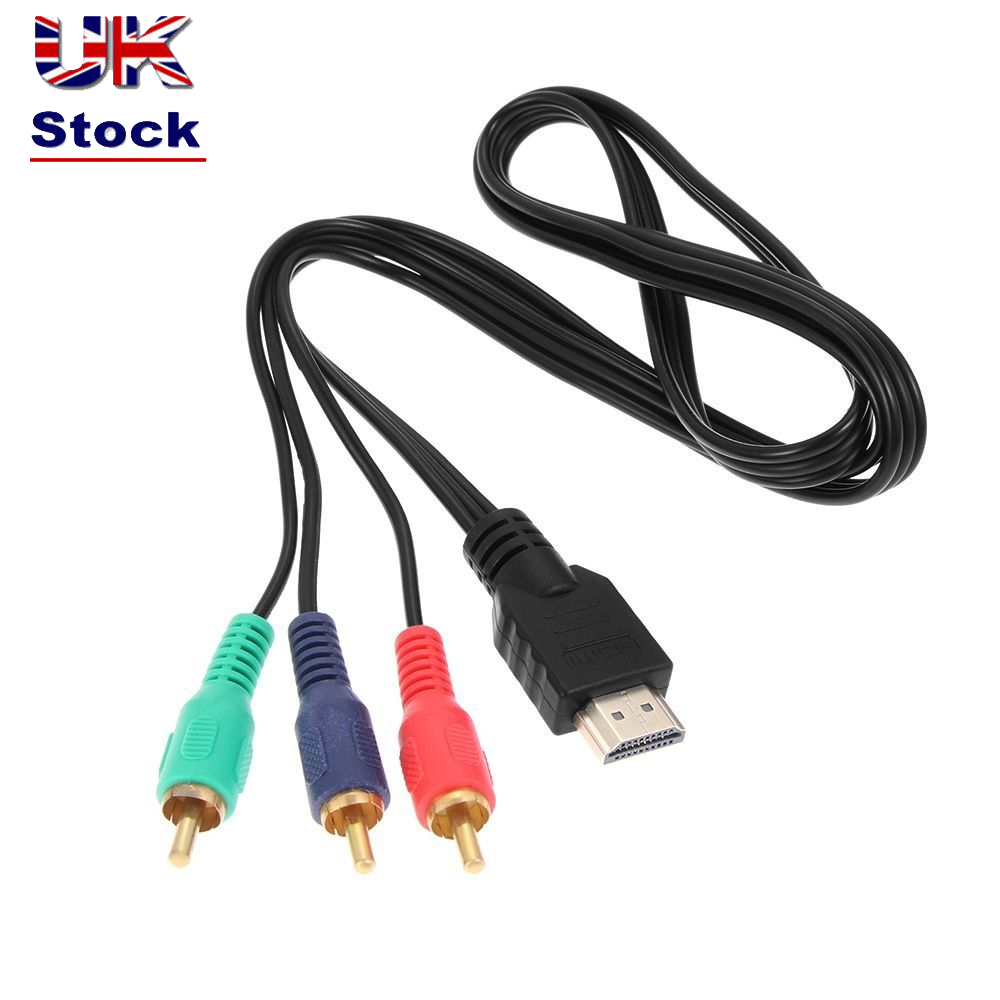 Multi Out Black Flat Video Audio AV Cable Adapter VGA Cord HDMI Male To 3 RCA