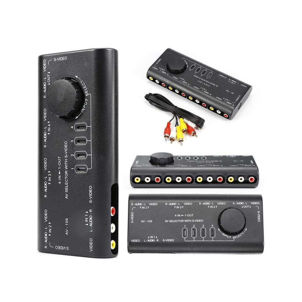 New 4 In 1 Out AV RCA Switch Box AV Audio Video Signal Switcher Splitter 4 Way Selector With RCA Cable For Television DVD VCD TV