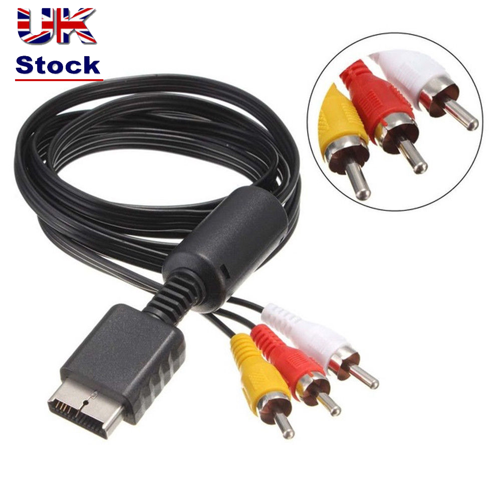 Out Black Video/Audio Cable 3 RCA Flat AV Cord For Sony Playstation PS PS2 PS3