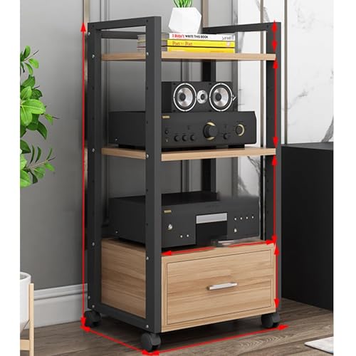 Easnuroz 2/3/4-Tiers HiFi Rack AV Shelf Media Storage Shelf With Adjustable Shelves HIFI Stand Record Player Stand Media Storage Shelves Audio Video Components(Wood color,60 * 48 * 80cm(4Tier))