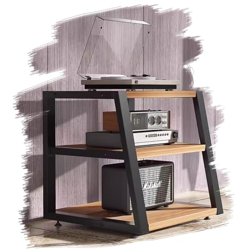 3-Tiers HiFi Rack AV Shelf Hifi Solid Wood Audio Rack Speaker Amplifier Cabinet TV Stand With Media Storage Shelves Audio Video Components (Color : Wood color, Size : 60 * 70 * 48cm)