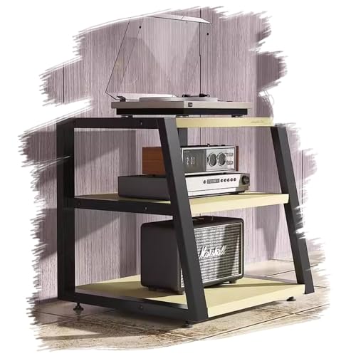 OUKEJNM 4 Tier Shelf Audio Stand, Open Storage Shelf, AV Component Media Stand, Stereo Cabinet, Stereo Rack Audio Tower, Modular Design (White Maple,3 Tier)