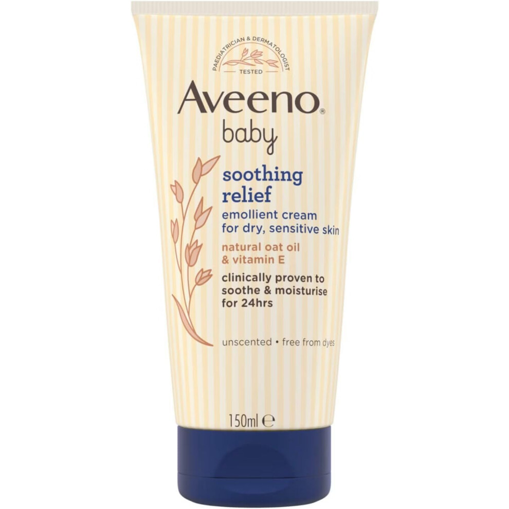 Aveeno Baby Soothing Relief Emollient Cream (1x 150ml), Unscented Baby Cream with Natural Oil & Vitamin E, Soothes and Moisturises for 24 Hours, for
