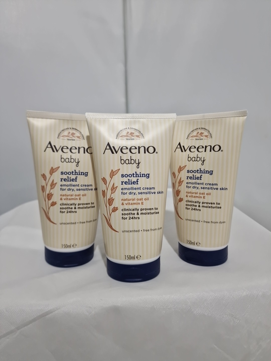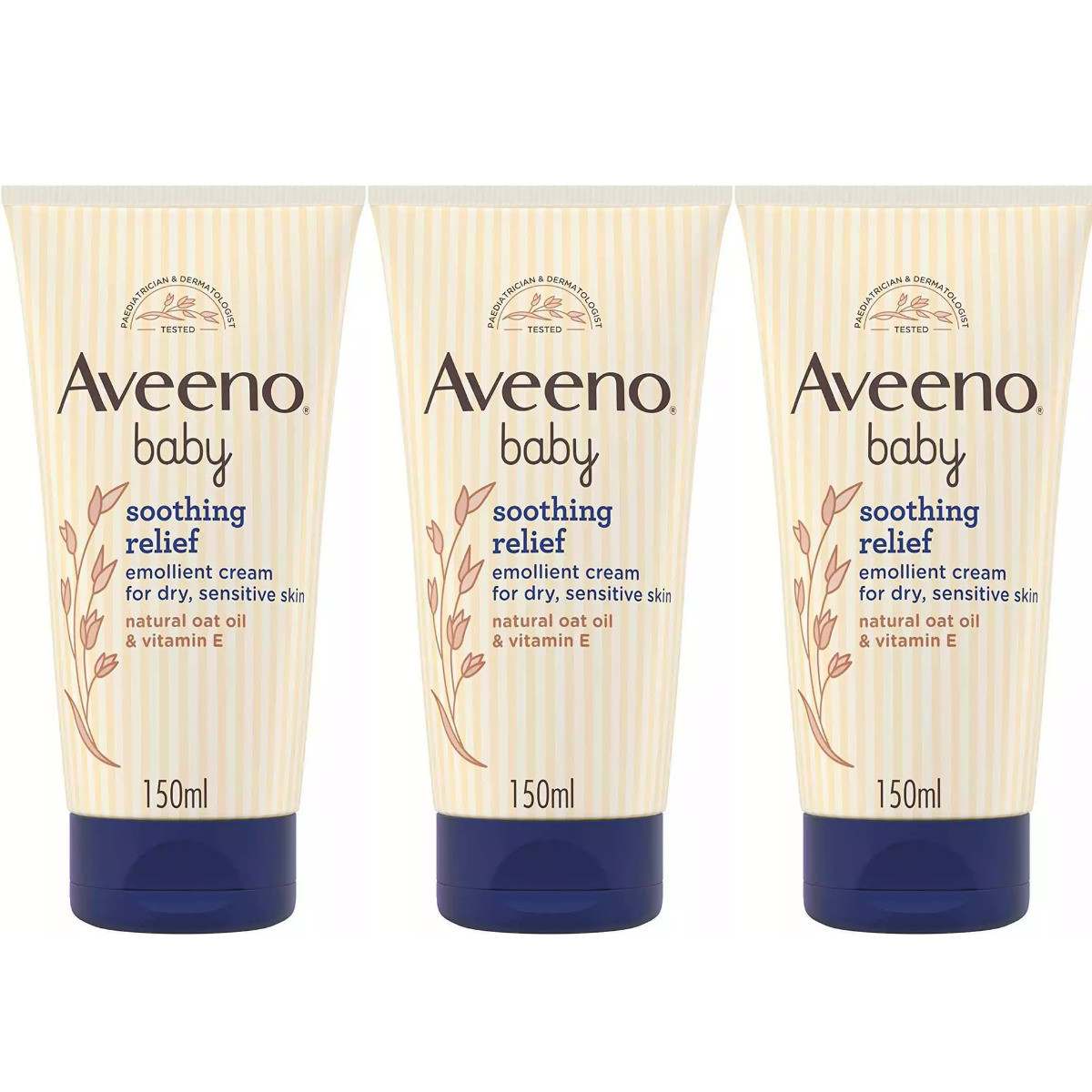 Aveeno Baby Soothing Relief Emollient Cream 150ml Dry And Sensitive Skin 3 Pack