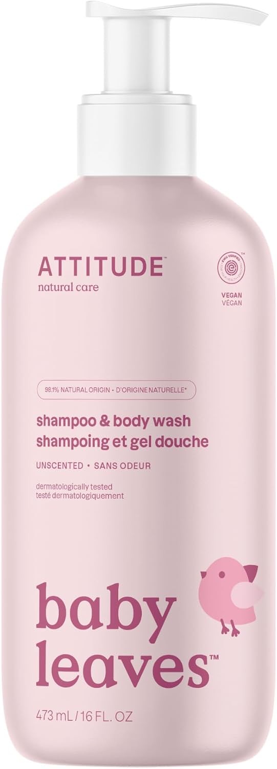 ATTITUDE 2in1 Hair Shampoo and Body Wash for Baby, Plant and Mineral-Based Gentle Formula, EWG Verified, Vegan Baby Products, Unscented, 473 mL