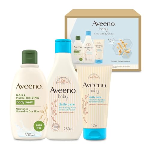 Aveeno Baby Mother and Baby Giftset – Gift for New Mums with Nourishing Body Wash (300ml), Babycare Hair & Body Wash (250ml) and Lotion (150ml), Soothing Products Suitable for Use on Sensitive Skin