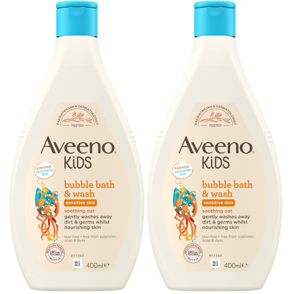 Aveeno Kids Bubble Bath & Wash 400ml | Enriched with Soothing Oat Extract | Gentle Body Wash Developed for Your Little Superhero (Pack of 2)