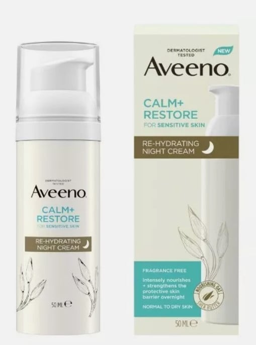 Aveeno CALM+RESTORE Re-Hydrating Night Cream (1 x 50ml) Fragrance-Free Face Car