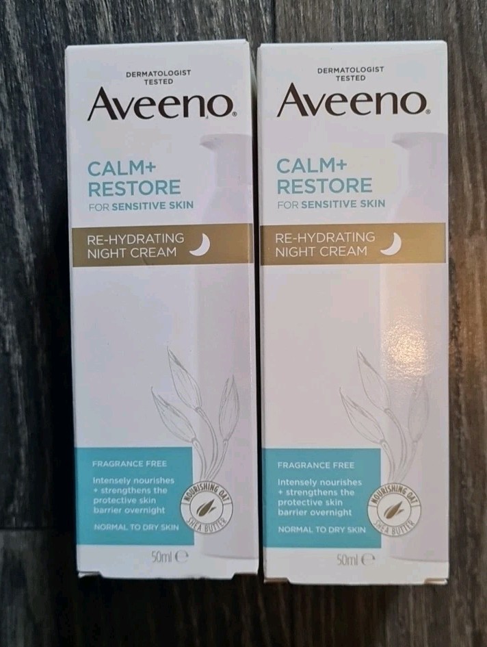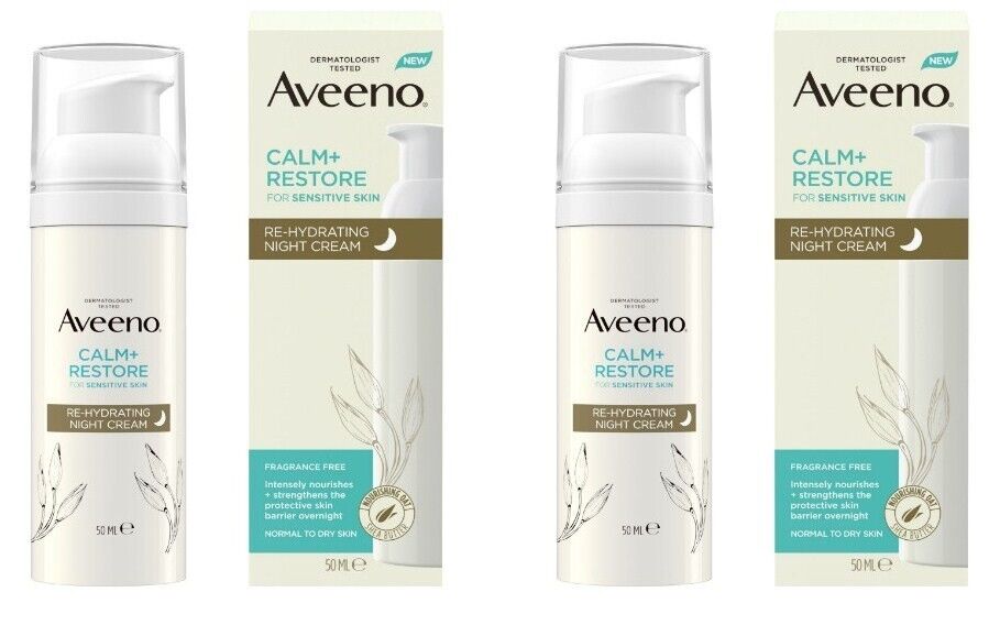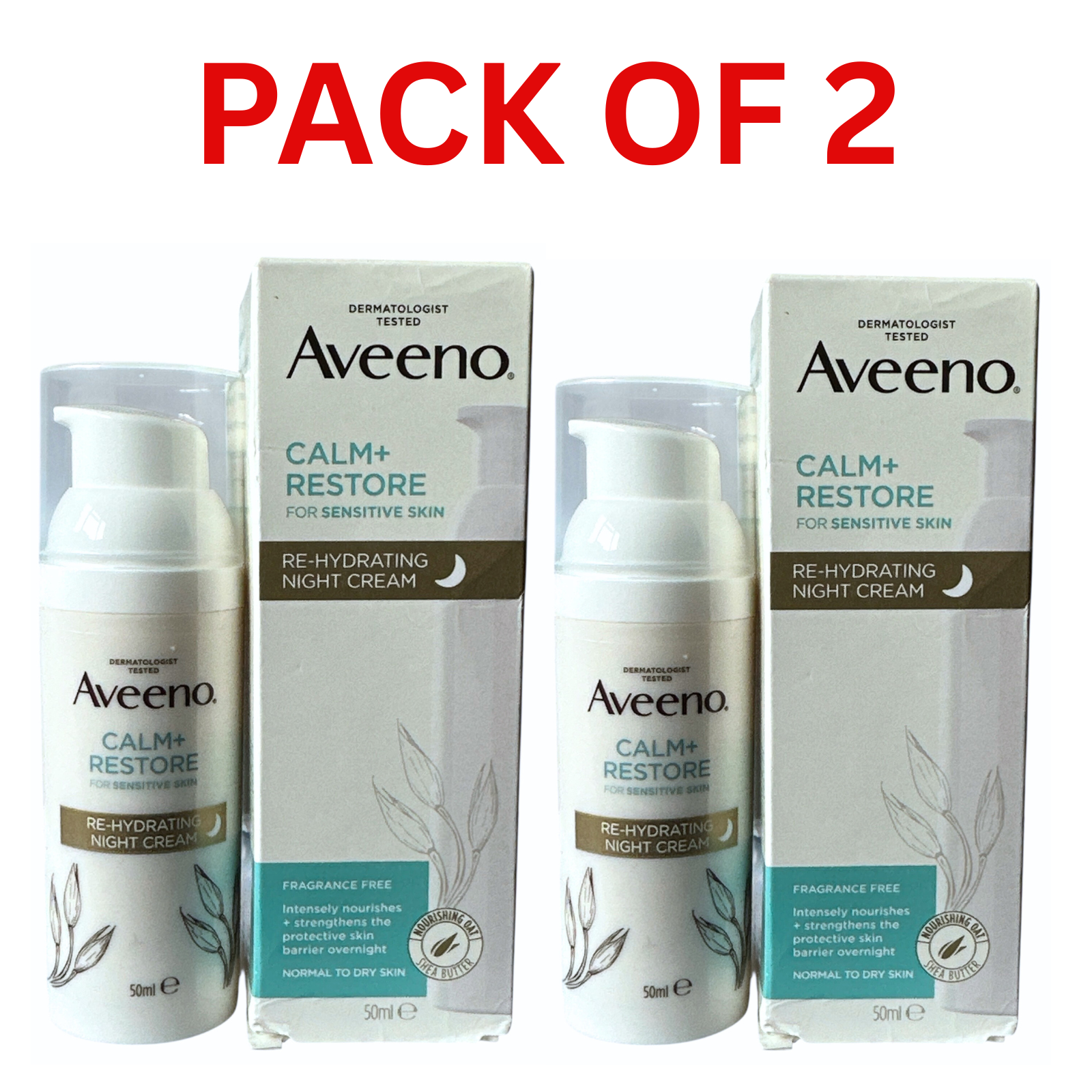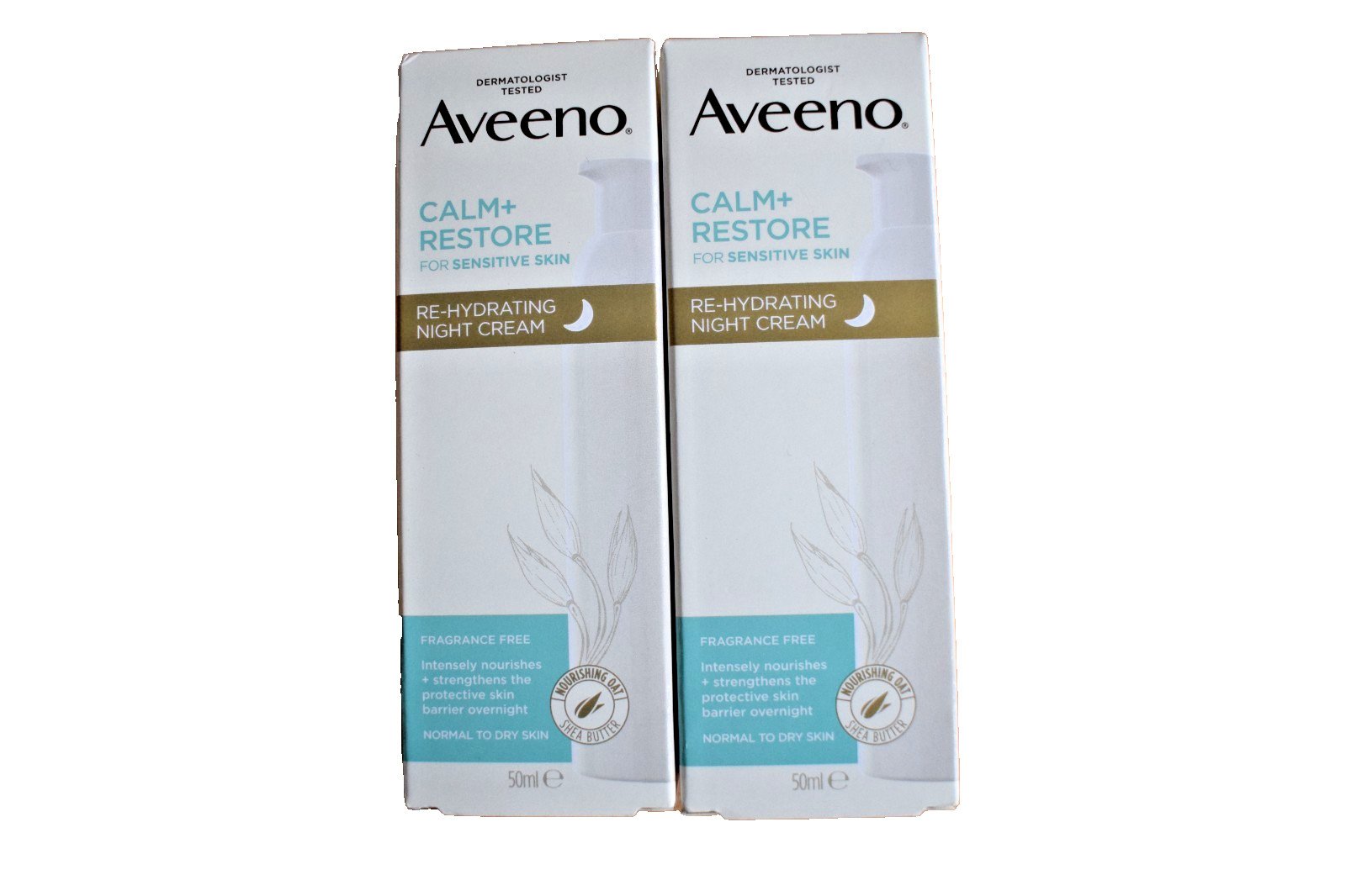 Aveeno Face CALM+RESTORE Re-Hydrating Night Cream 50ml X 2 Pack Sensitive Skin