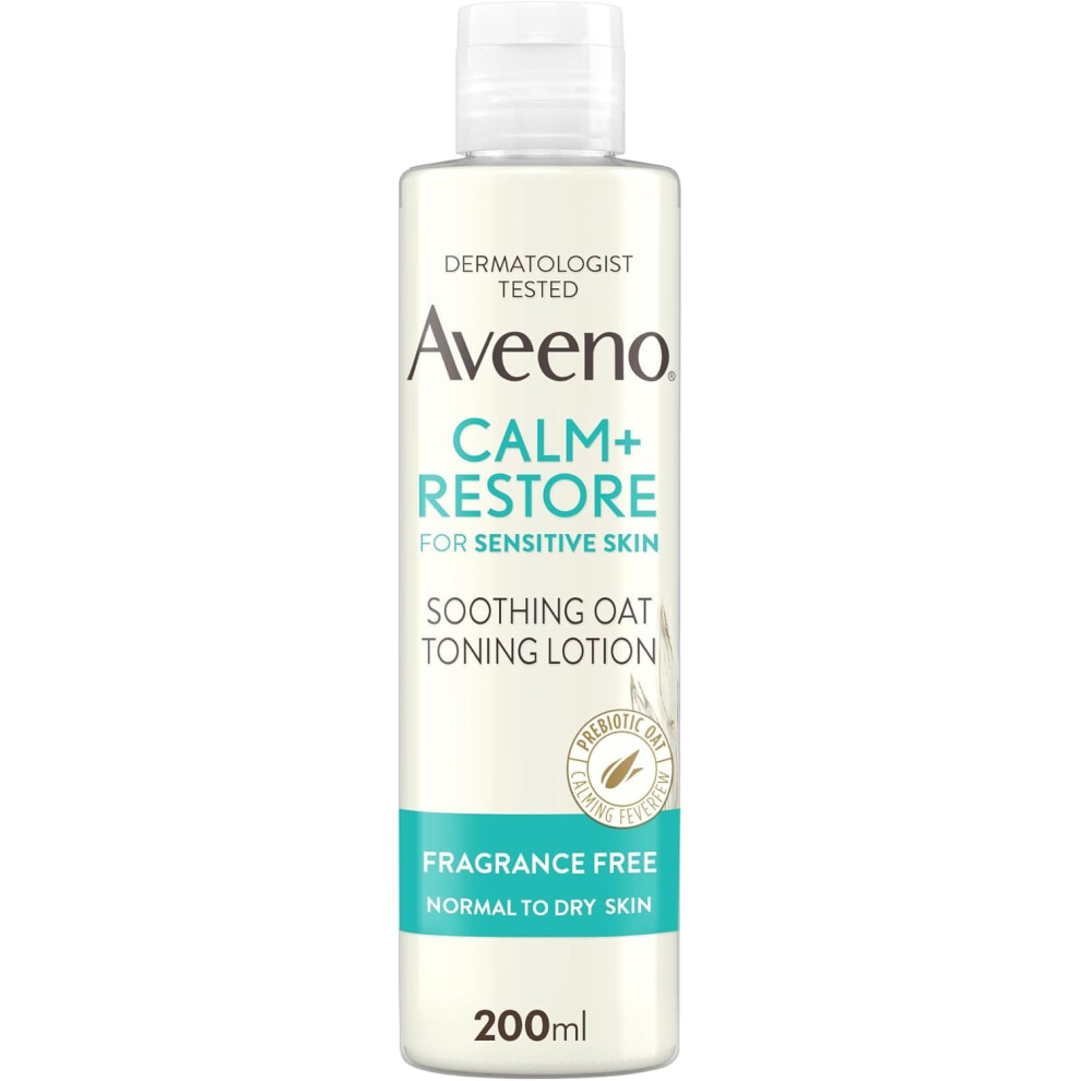 Aveeno Face Calm+Restore Soothing Oat Toning Lotion (1 x 200ml), Fragrance-Free Face Care with Prebiotic Oat & Calming Feverfew, Leaves Skin Ultra Refreshed, Suitable for Sensitive Skin
