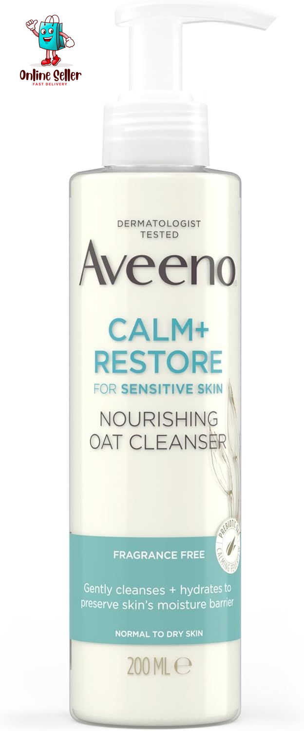 Aveeno Face Calm+Restore Nourishing Oat Cleanser (1x 200ml) Non-Foaming Face Ca