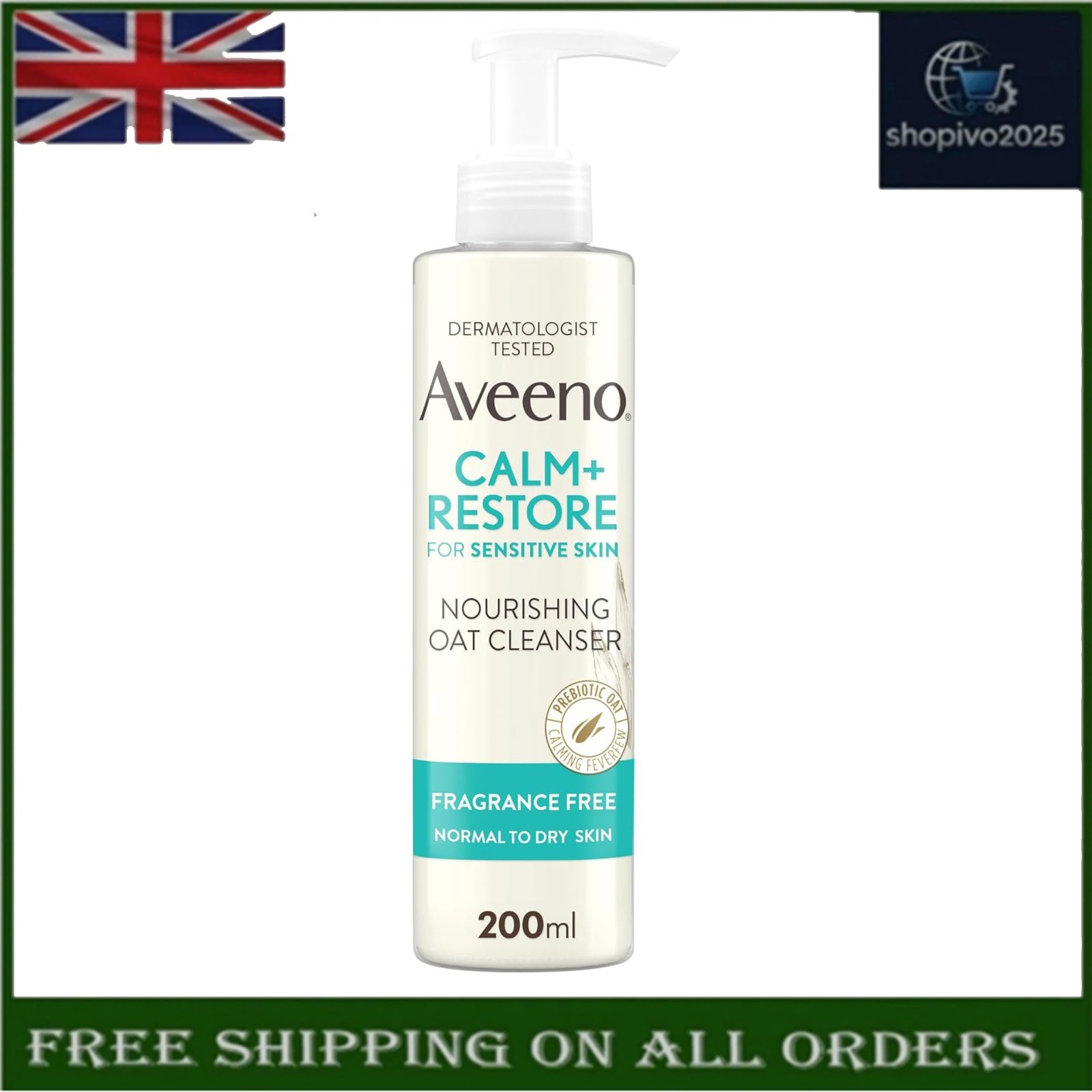 AVEENO Face CALM+RESTORE Nourishing Oat Cleanser (1x 200ml), Non-Foaming Face Care, Gentle Cleanser with Prebiotic Oat and Calming Feverfew, Helps Preserve Skin's Barrier, For Sensitive Skin