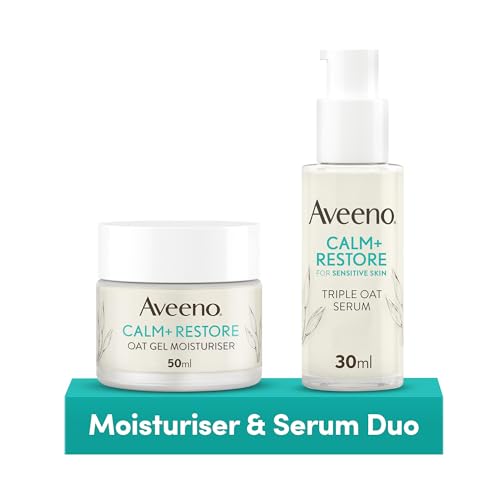 Aveeno Face Calm+Restore Oat Gel Moisturiser & Triple Oat Serum Duo | Nourishing Skincare Bundle with Gel Moisturiser (1x 50ml) and Face Serum (1x 50ml) Developed for Sensitive Skin