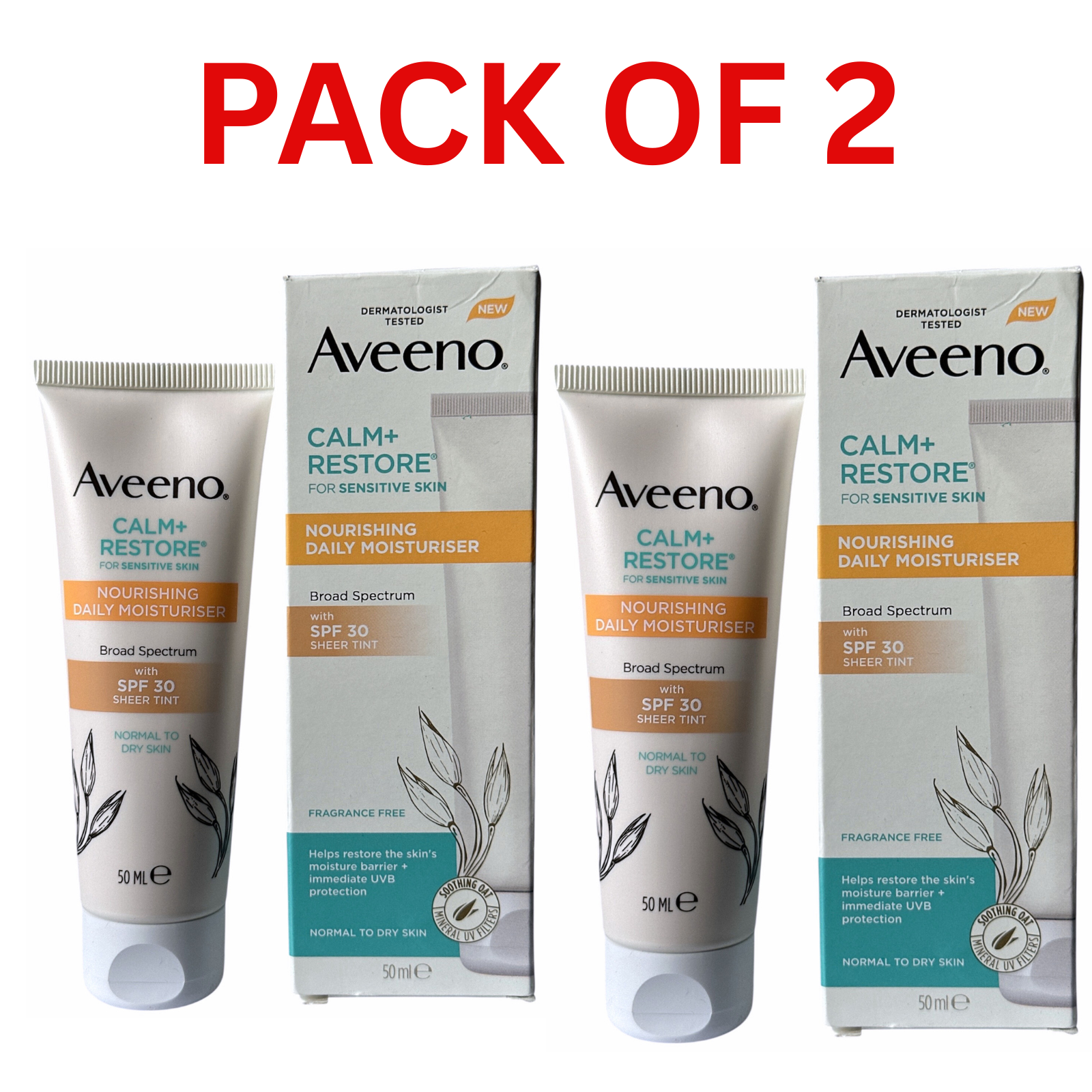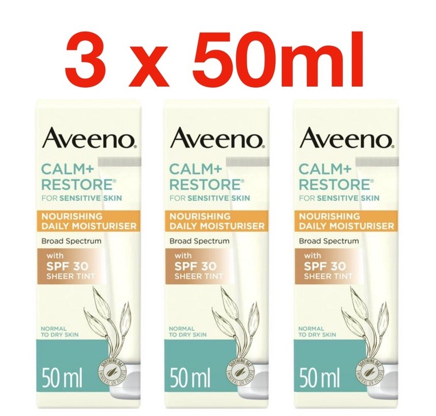 Aveeno Calm + Restore Nourishing Daily Moisturiser SPF30 Sheer Tint - 3 x 50ml