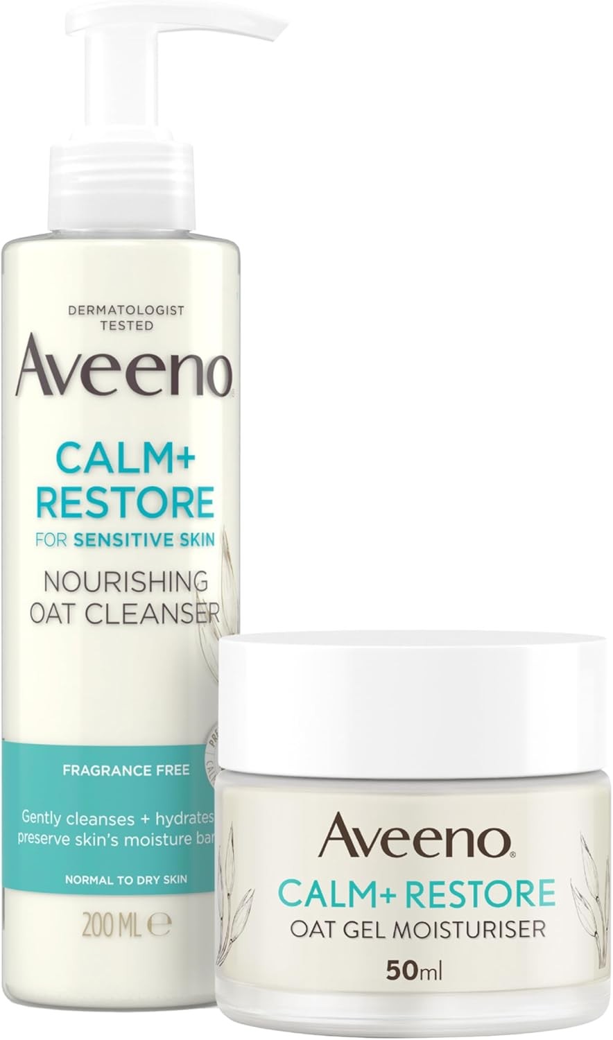 Aveeno Face Calm+Restore Oat Cleanser (1x 200ml) and Oat Gel Moisturiser (1x 50