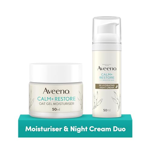 Aveeno Face Calm+Restore Day & Night Moisturiser Duo | Intensely Nourishing Bundle with Aveeno Oat Gel Moisturiser (50ml) and Rehydrating Night Cream (50ml) Developed for Sensitive Skin