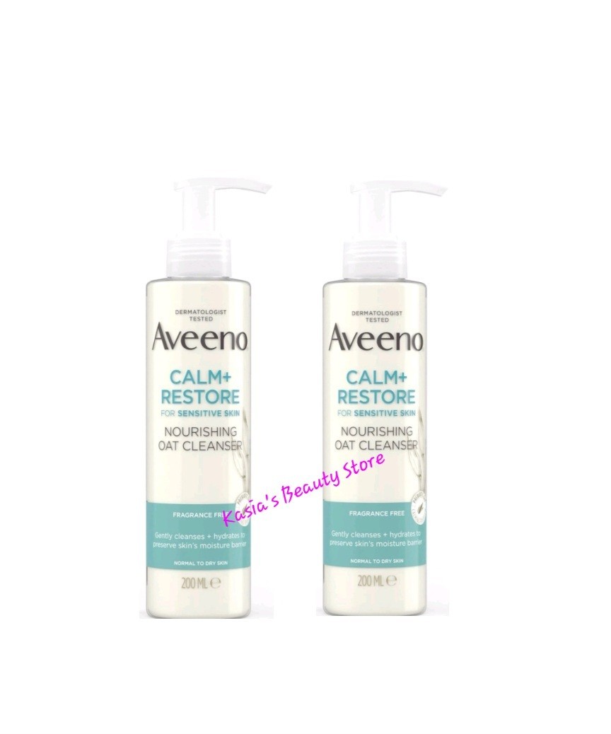 2 X 200ml Aveeno Calm+Restore Nourishing Oat Cleanser For Sensitive Skin New
