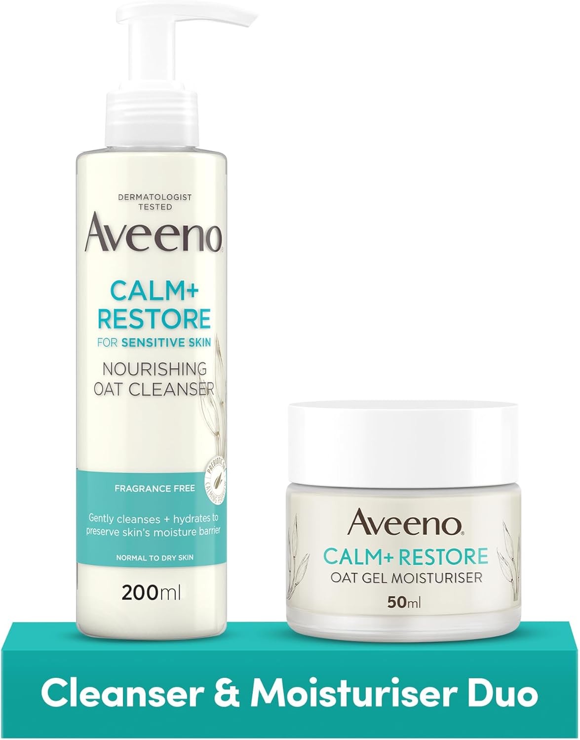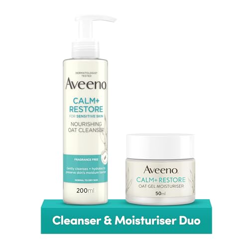 Aveeno Face Calm+Restore Oat Cleanser (1x 200ml) and Oat Gel Moisturiser (1x 50ml), Duo Nourishing Skincare Bundle, Suitable for Sensitive Skin