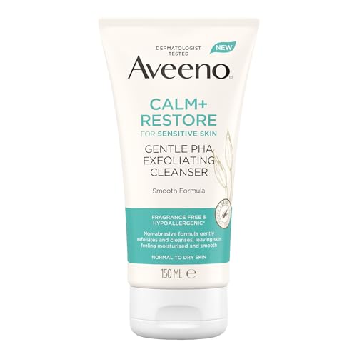 Aveeno Face Calm+Restore Gentle PHA Exfoliating Cleanser (1x 150ml), With Oat Oil and Naturally Derived PHA, Face Cleanser for Sensitive Skin, Exfoliator Gentle Enough for Daily Use