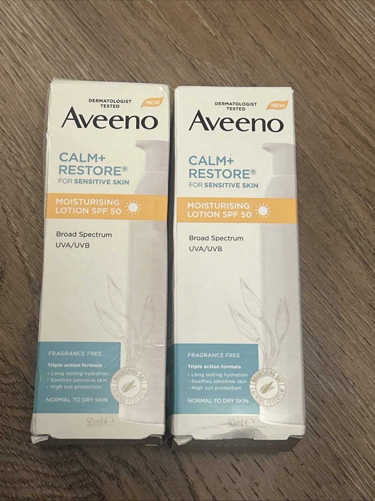 Aveeno Face CALM+RESTORE Moisturising Lotion SPF 50 2 x 50ml New