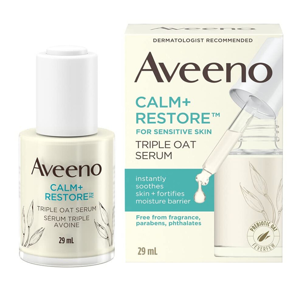 AVEENO Face CALM+RESTORE Triple Oat Serum (1 x 30ml), Instantly Smoothing Face Serum with Triple Oat Complex and Calming Feverfew for Fortified Skin,