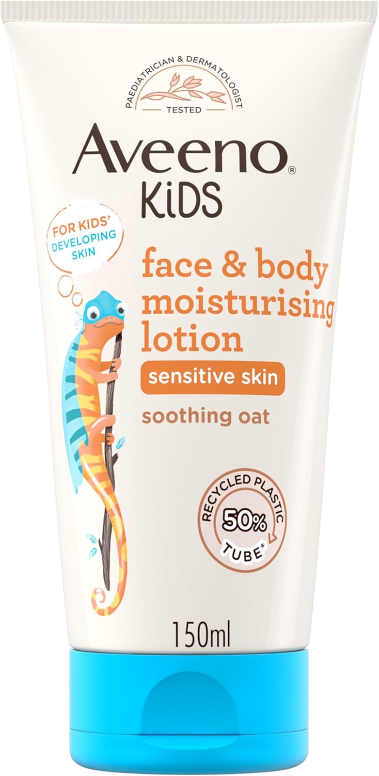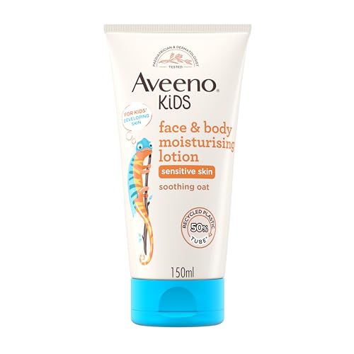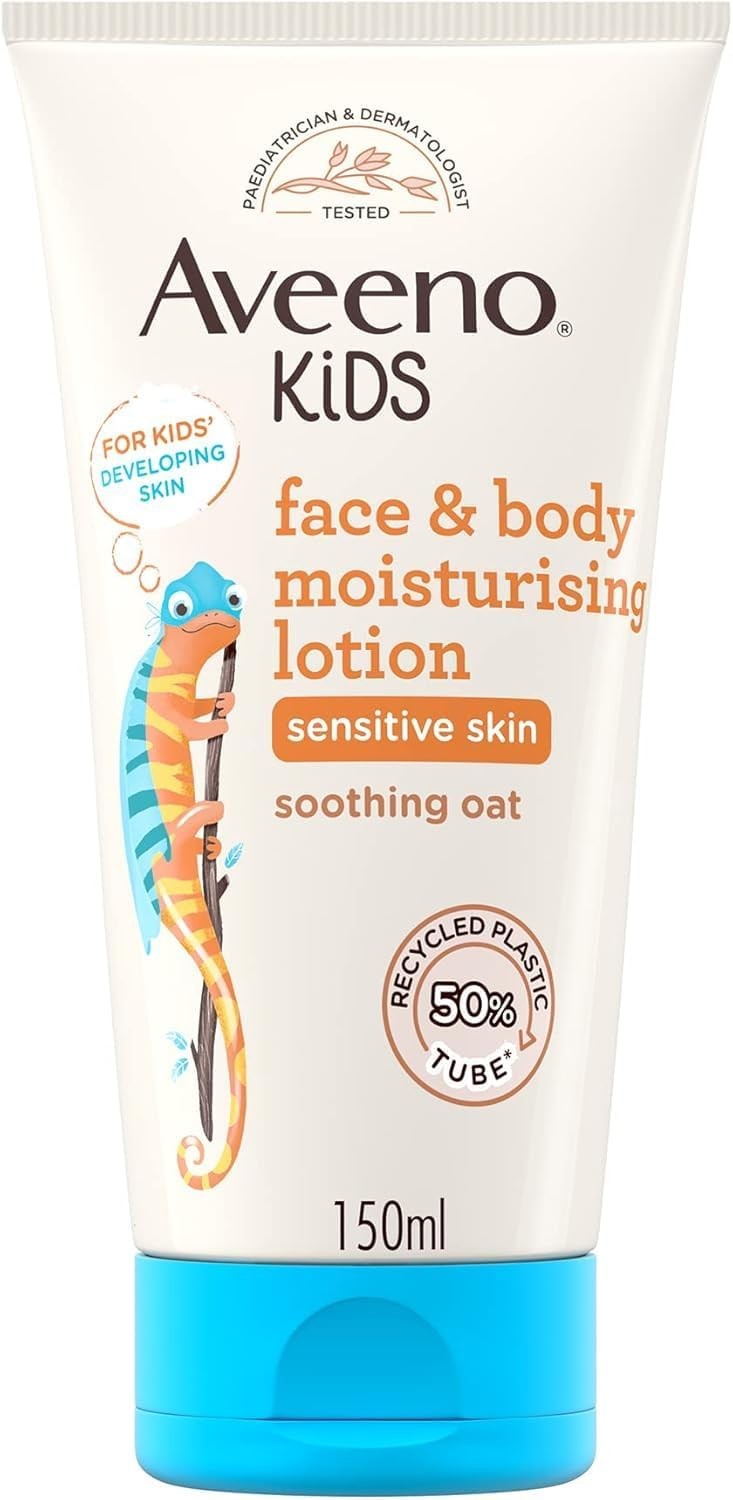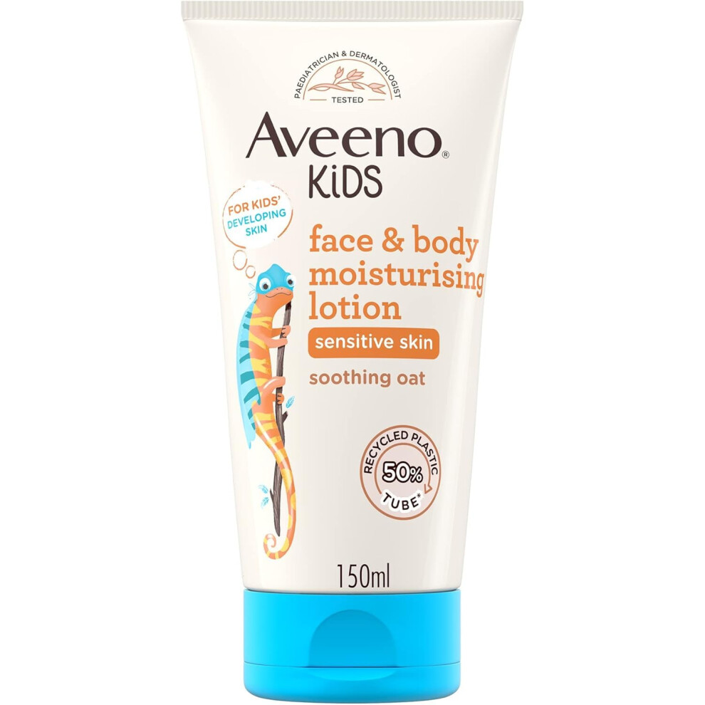 Aveeno Kids Face & Body Moisturising Lotion (1 x 150ml), Non-Greasy and Fragrance-Free Moisturiser Enriched with Soothing Oat, Face and Body Lotion for Kids' Sensitive and Developing Skin