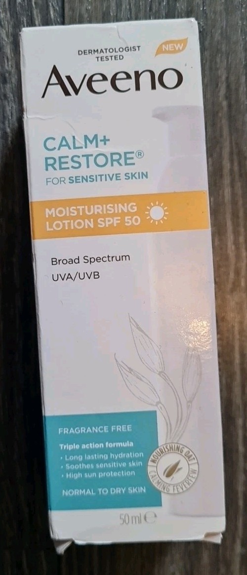 Aveeno Face CALM+RESTORE Moisturising Lotion SPF 50 (1 x 50ml) Lightweight NEW