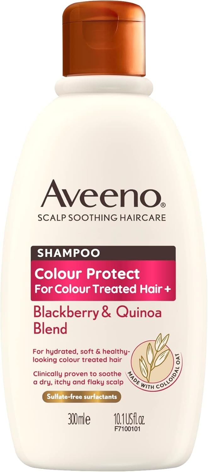 Aveeno Scalp Soothing Haircare Colour Protect Shampoo, Blackberry & Quinoa Blend, for Colour Treated Hair, Soothes Dry, Itchy & Flaky Scalp, Clinically Proven, Sulfate Free, 300ml