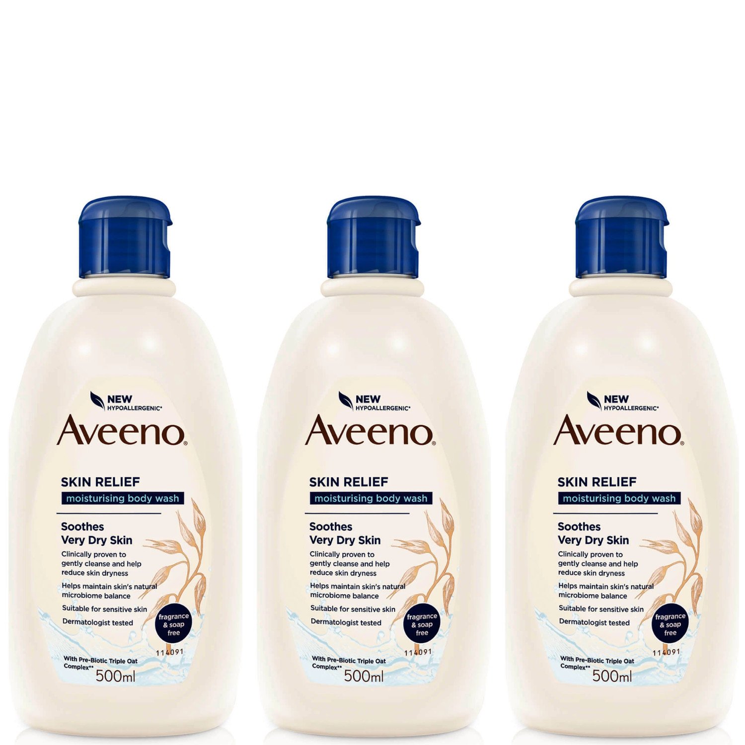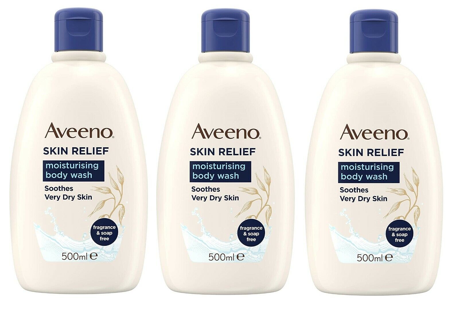 3 x Aveeno Skin Relief Moisturising Body Wash 500ml Soothes Very Dry Skin