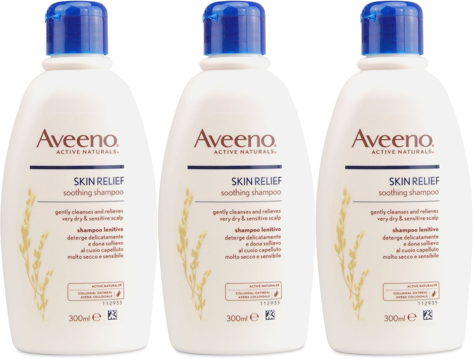 3 x Aveeno Skin Relief Soothing Shampoo 300ml - Dry Itchy Sensitive Scalp Care
