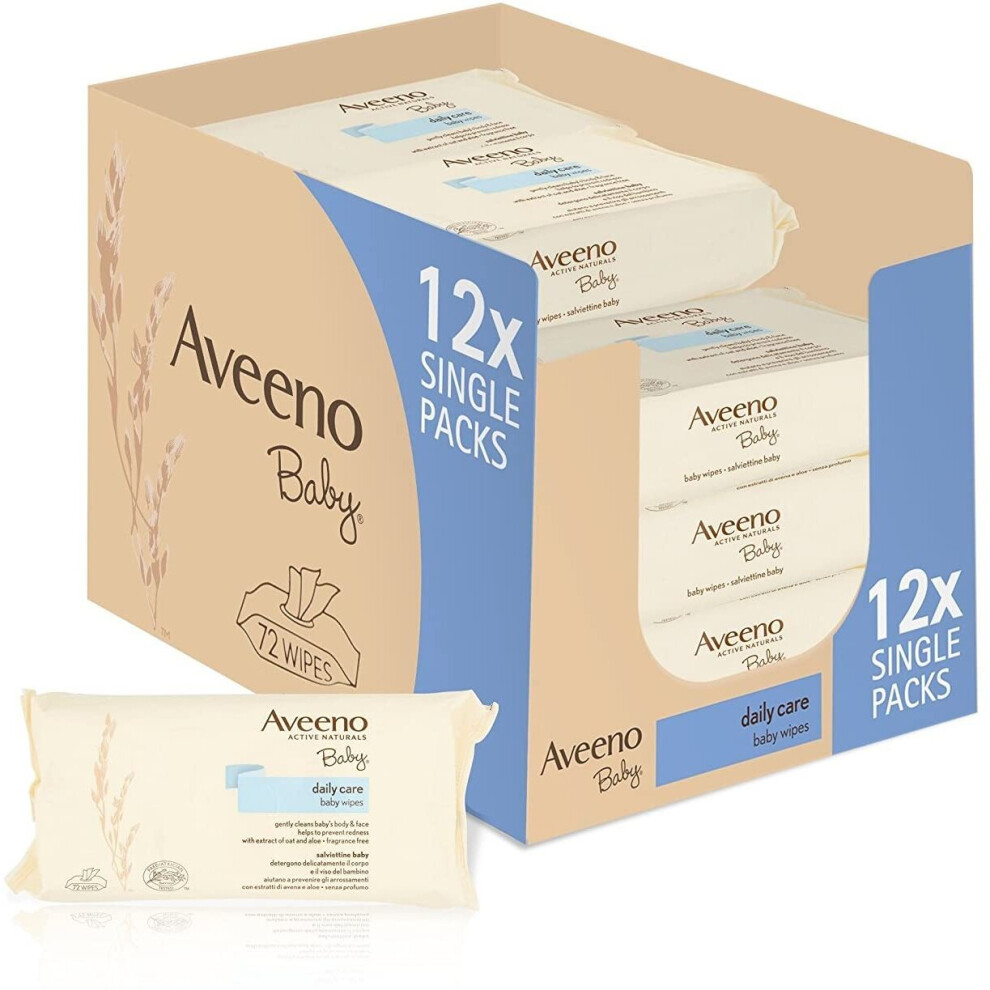 AVEENO Baby Daily Care Wipes - Cleanse Gently and Efficiently - Baby Wipes - Baby Essentials - Pack of 12 (864 Wipes in Total)