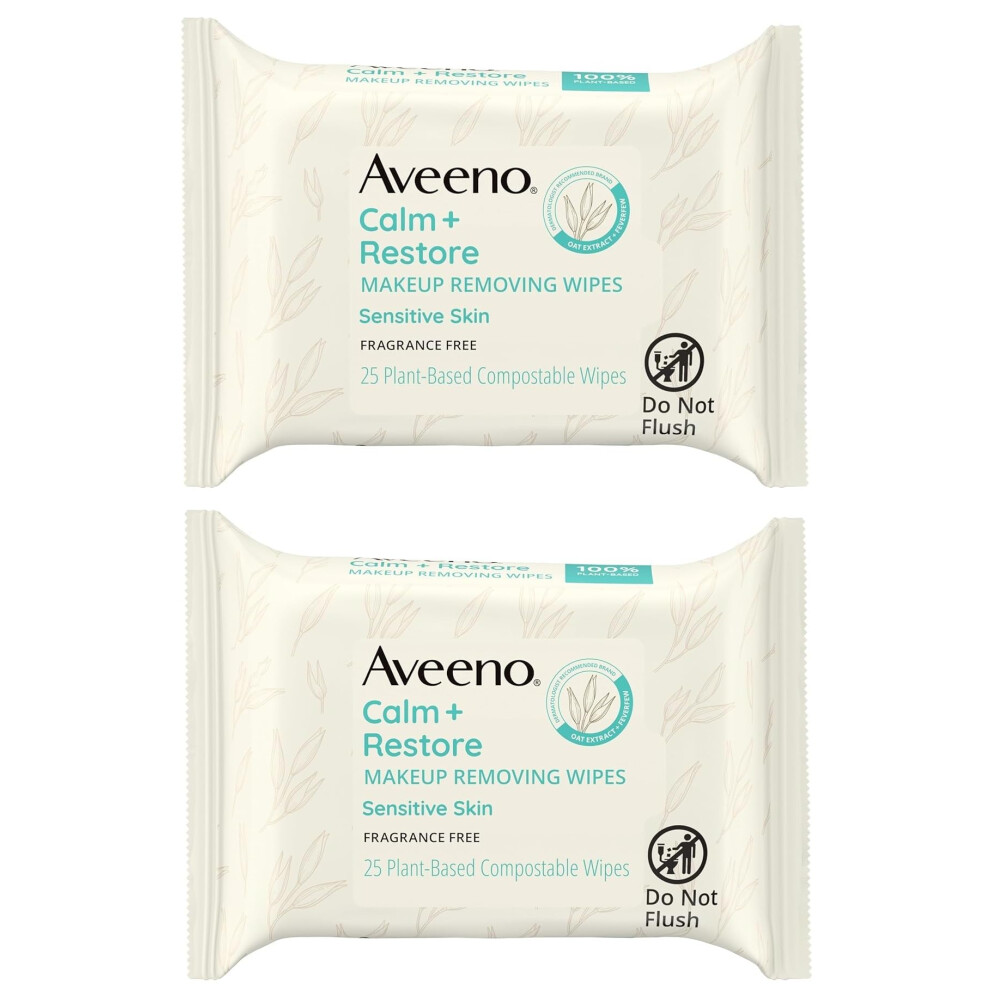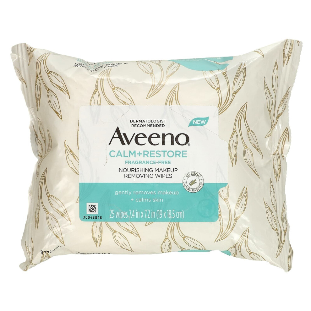 Aveeno, Calm + Restore, Nourishing Makeup Removing Wipes, Fragrance-Free, 25 Wipes