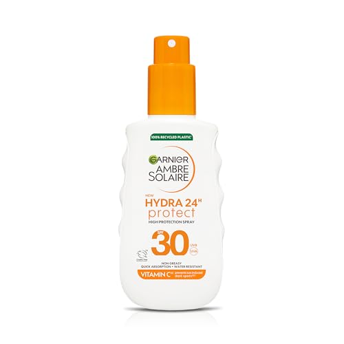 Garnier Ambre Solaire SPF 30 Hydra 24 Hour Protect High Protection UVB & UVA Hydrating Sun Cream Spray, Enriched with Vitamin E, Water Resistant, Non-Greasy, Fast Absorbing 150ml